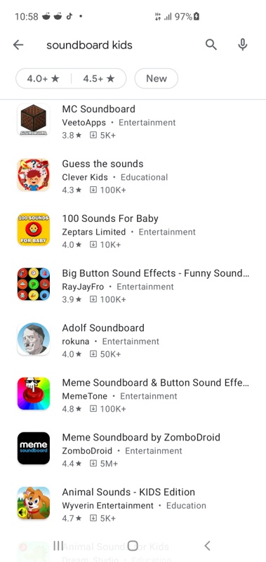 Ich hatte eine Idee fuer ein edukatives Soundboard. So weit so gut. Als erstes beginne ich wie so oft mit einer Markt Analyse a la "Was gibt es schon?" und "Wie ist es umgesetzt?" ... Also direkt in den Play Store und "Soundboard Kids" eingegeben. Mittendrin> Adolf Soundboard und das erte was mir in den Kopf kommt is Jan Delay mit "Der beose Mann mit dem kleinen Bart ist noch gar nicht tot."